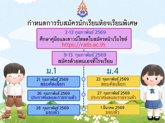 ( 18 ธ.ค. 68 ) - แจ้งปรับรูปแบบการเรียนการสอนสำหรับนักเรียนโรงเรียนราชโบริกานุเคราะห์